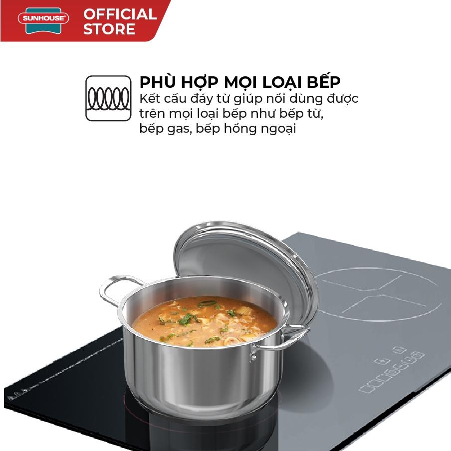 Với cấu tạo đáy từ giúp bộ nồi inox SUNHOUSE SHG995 dùng được trên mọi loại bếp hiện nay: bếp gas, bếp hồng ngoại, và cả dòng bếp kén nồi như bếp từ.
