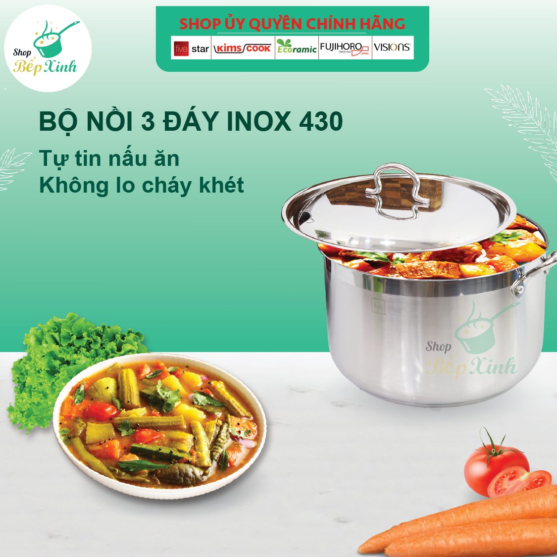 Bộ xửng hấp 3 đáy inox 430 FiveStar