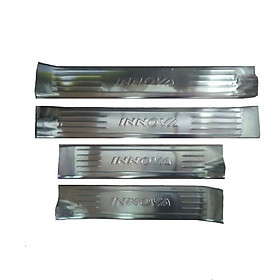 Bộ sản phẩm gồm 4 chi tiết cho 4 bậc trong cửa xe, có sẵn keo 3M ở mặt sau sản phẩm, rất chắc chắn