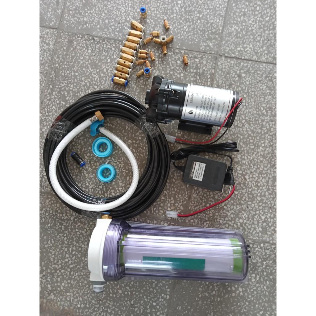Bộ phun sương 10 béc đồng tạo ẩm làm mát không khí và tưới lan có sẵn máy bơm áp lực