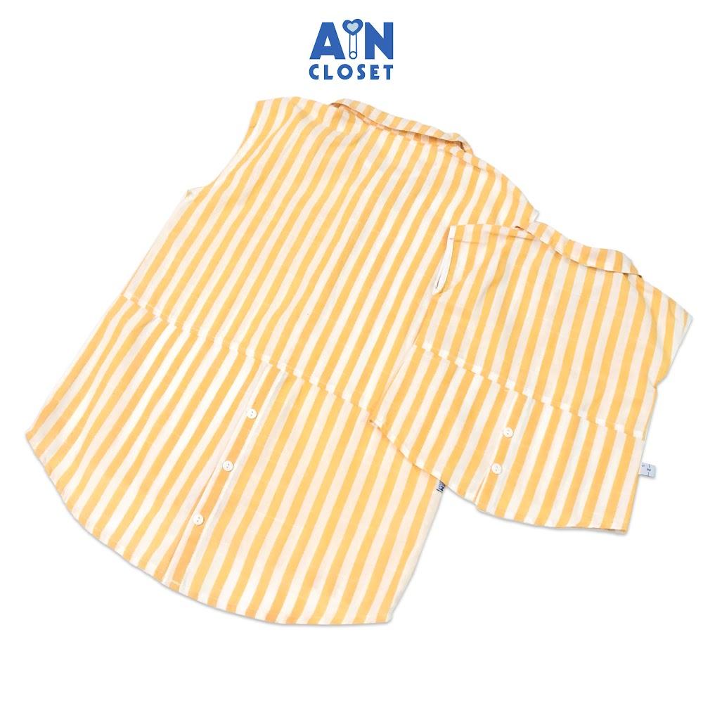 ✨Bộ quần áo ngắn cho mẹ họa tiết Kẻ vàng trắng cổ sơ mi linen cotton - AICDMEXU7K6V - AIN Closet