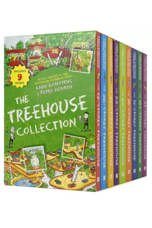 Join New York Times-bestselling author Andy Griffiths and illustrator Terry Denton on a series of wild storytelling adventures that Publishers Weekly described as “Anarchic absurdity at its best.” Andy and Terry live in a tree. And when we say “tree,” we mean “treehouse” and when we say “treehouse,” we don’t mean just any old treehouse, we mean the most amazing treehouse in the world! It’s filled with things like shark-invested see-through swimming pools, secret underground labs, and marshmallow machines that follow you around and automatically shoot marshmallows into your mouth whenever you’re hungry. The treehouse is also where they make books together. Andy writes the words and Terry draws the pictures…or they would if it weren’t for all the invading pirates, giant gorillas, out of control inventions and evil vegetable attacks that keep distracting them! The 13-Storey Treehouse The 26-Storey Treehouse The 39-Storey Treehouse The 52-Storey Treehouse The 65-Storey Treehouse The 78-Storey Treehouse The 91-Storey Treehouse The 104-Storey Treehouse The 117-Storey Treehouse
