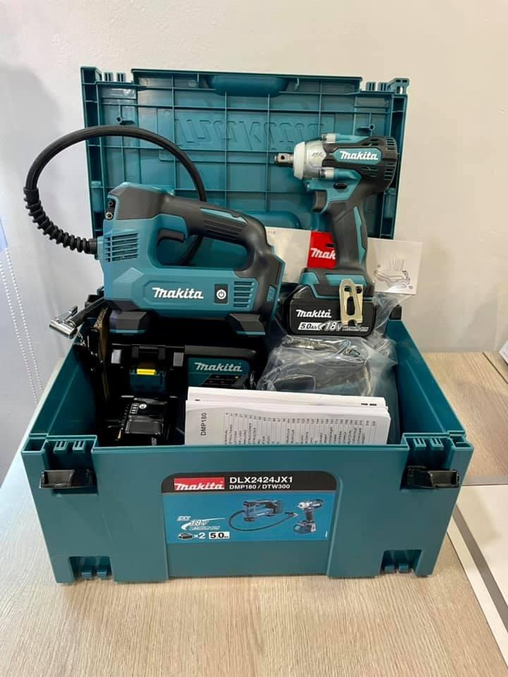 Combo makita DLX2424JX1 gồm 1 mát DTW300 1 máy DMP180 1 sạc nhanh 2 pin 5 AH