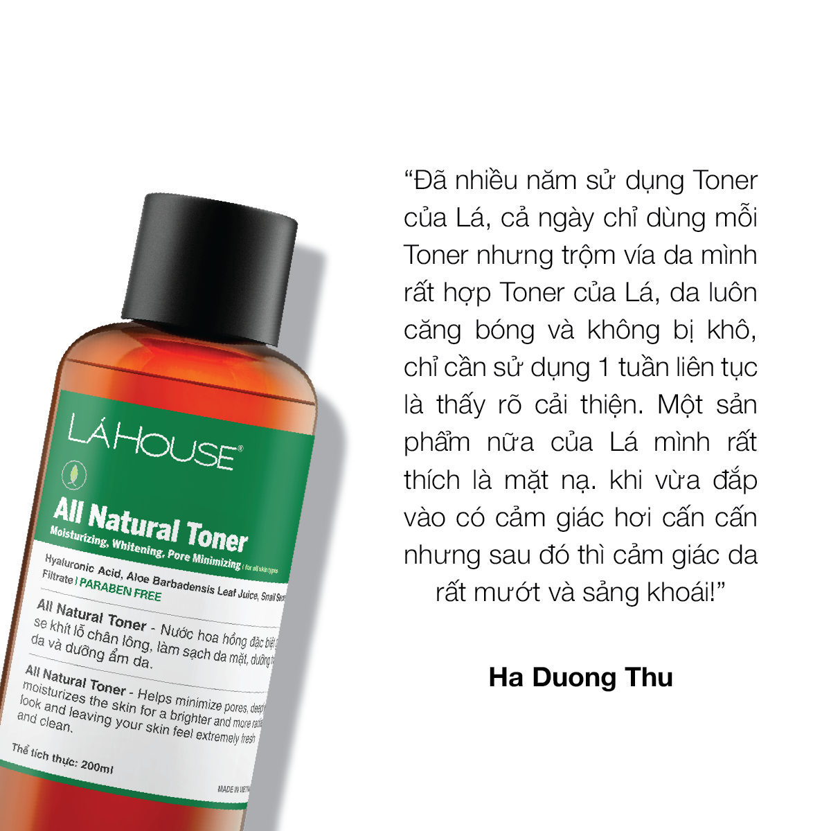 Nước hoa hồng All Natural Toner với các chiết xuất thiên nhiên ưu việt như Aloe Vera, chiết xuất Ốc sên, Hyaluronic Acid,… giúp se khít lỗ chân lông, giúp làm sạch da mặt, giúp dưỡng trắng da và dưỡng ẩm da.