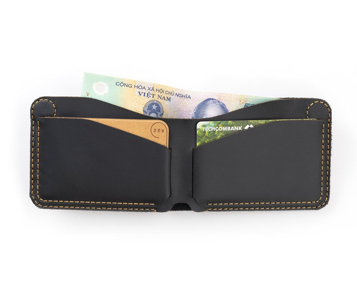 Ví SEN To: Ví SEN To được thiết kế hướng đến trải nghiệm người dùng: thao tác đóng mở nhanh gọn nhờ nắp nam châm, sức chứa rộng rãi nhưng vẫn tinh tế. Ngăn chứa: 7 ngăn thẻ, 1 ngăn giấy tờ lớn, 2 ngăn tiền hoặc điện thoại.