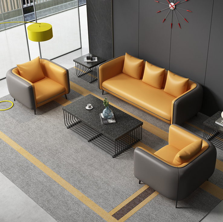 ✨Bộ sofa da văn phòng giá rẻ hiện đại Juno Sofa kèm ghế đơn HVPCT-20