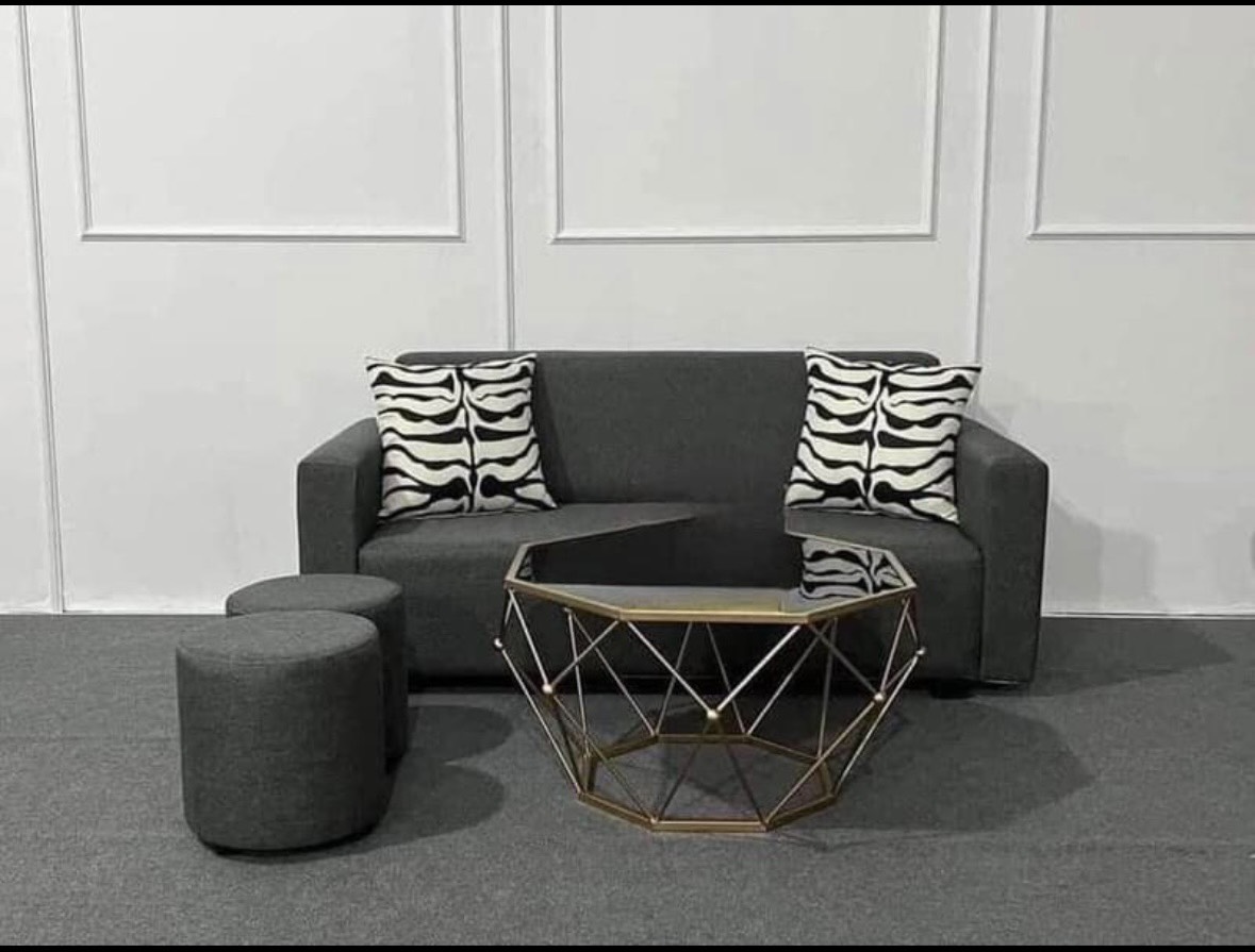 Bộ sofa phòng khách chung cư mini: bao gồm 1 ghế, 2 gối, 2 đôn và bàn