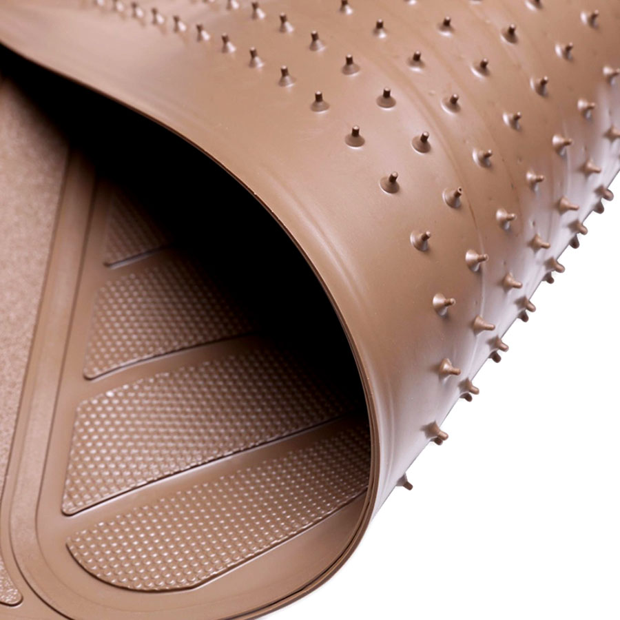 Mặt sau của thảm có gai cách đều nhau giúp bảo vệ mặt sàn của xe, và chống trơn cho người dùng.