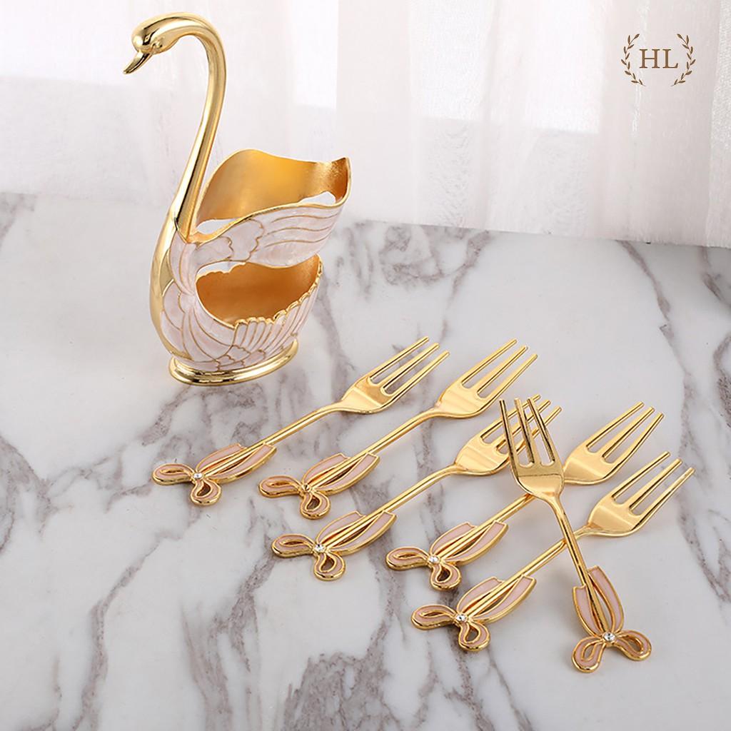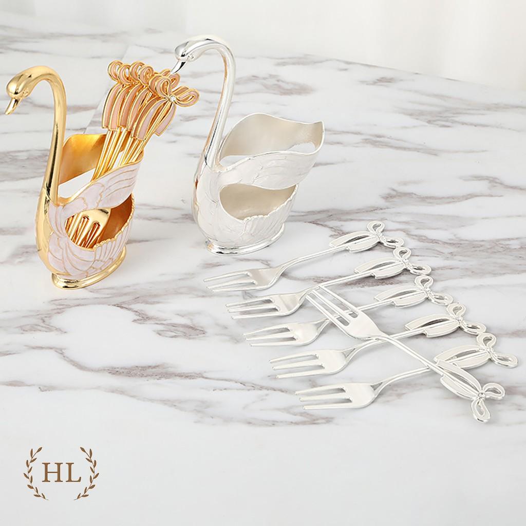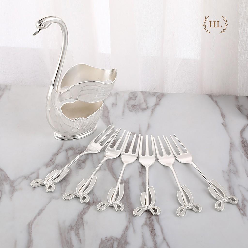 Bộ dĩa ăn hoa quả inox cao cấp đế thiên nga nghệ thuật sang trọng, nĩa ăn trái cây kháng khuẩn HADU