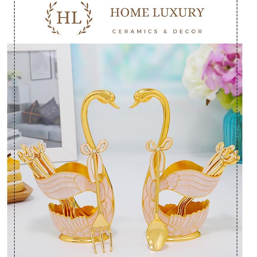 ✨BỘ THÌA NĨA THIÊN NGA HỢP KIM ĐÍNH ĐÁ CÓ NƠ | LẴNG THIÊN NGA HỢP KIM KÈM THÌA HOẶC RĨA MẠ VÀNG CAO CẤP