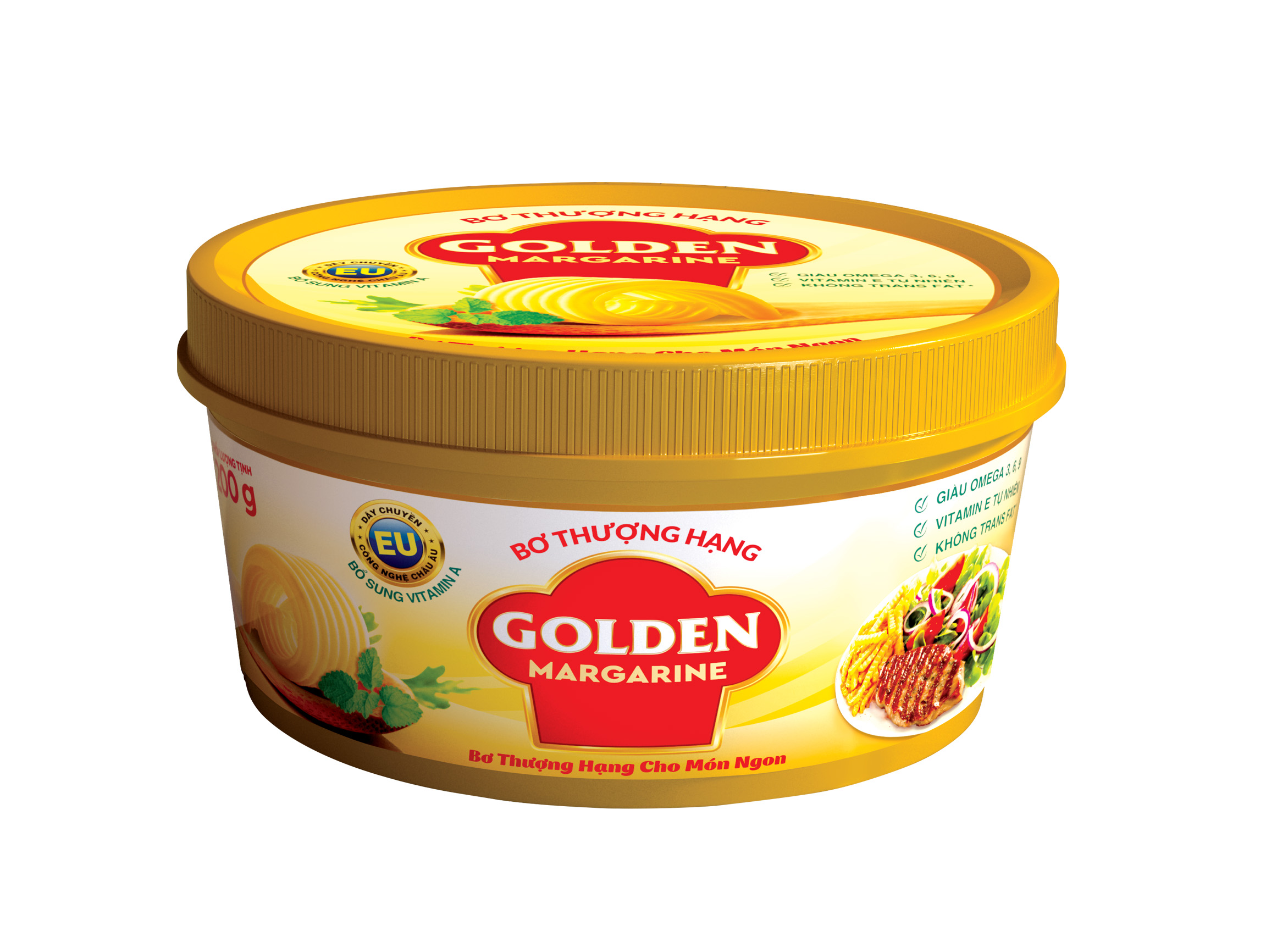 Bơ thượng hạng Golden Margarine được sản xuất tại Việt Nam theo dây chuyền công nghệ hiện đại từ Châu Âu, với thành phần được lựa chọn kỹ.