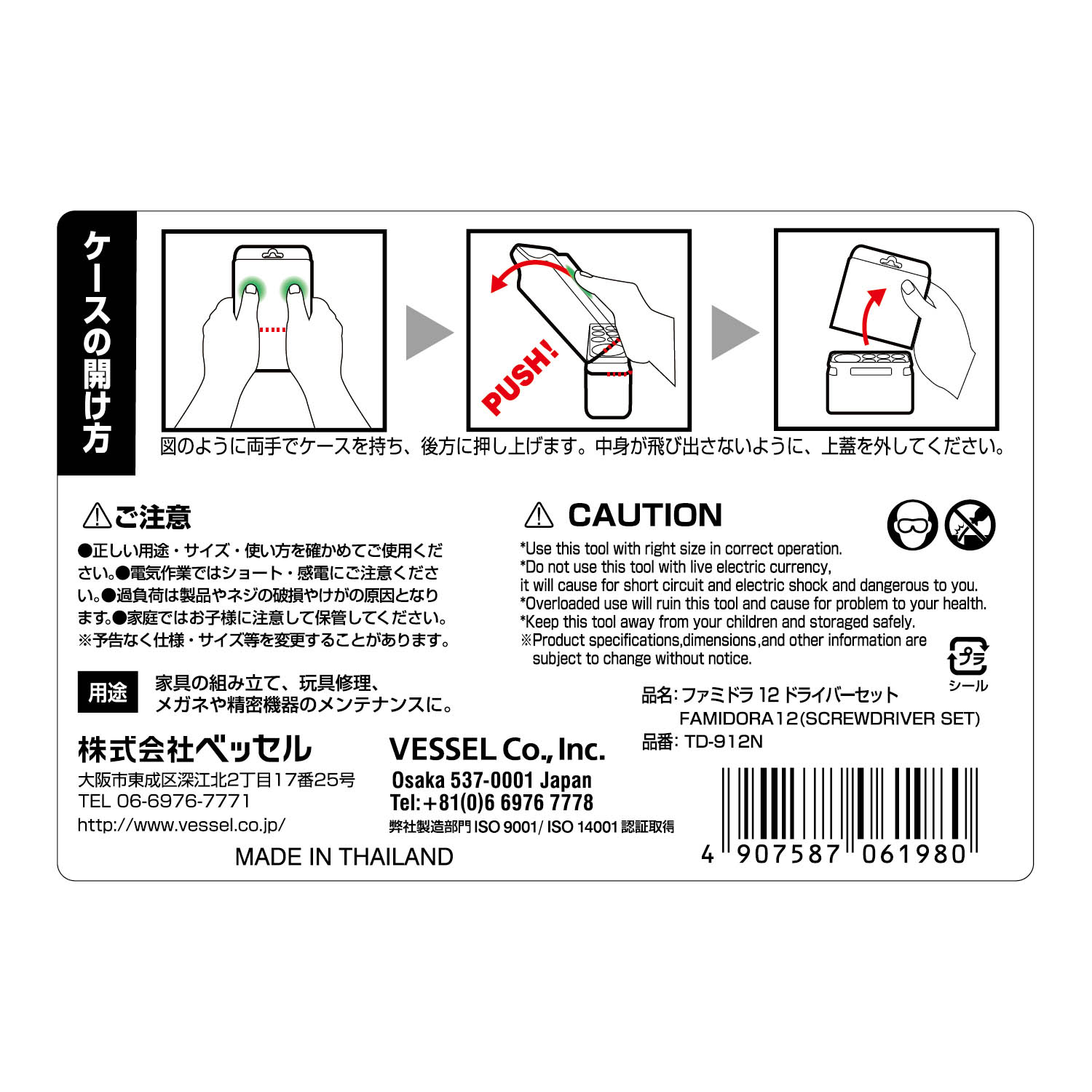 Bộ tô vít Model No.TD-912N thương hiệu Vessel được sản xuất tại Thái Lan, kiểm tra chất lượng và đóng gói sản phẩm tại Nhật Bản