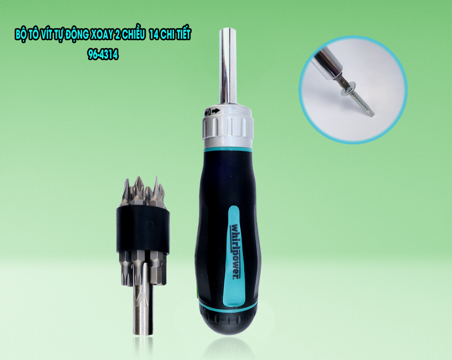 Bộ Tô vít 14 chi tiết xoay 2 chiều tự động Whirlpower 96-4314 | Tân Thành Phát