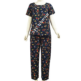 Bộ đũi mặc nhà trung niên áo tay lỡ, quần dài Vicci DTL02, thiết kế đơn giản, với tay lỡ phối viền ren, họa tiết thêu hoa đơn giản nhưng vẫn toát lên vẻ sang