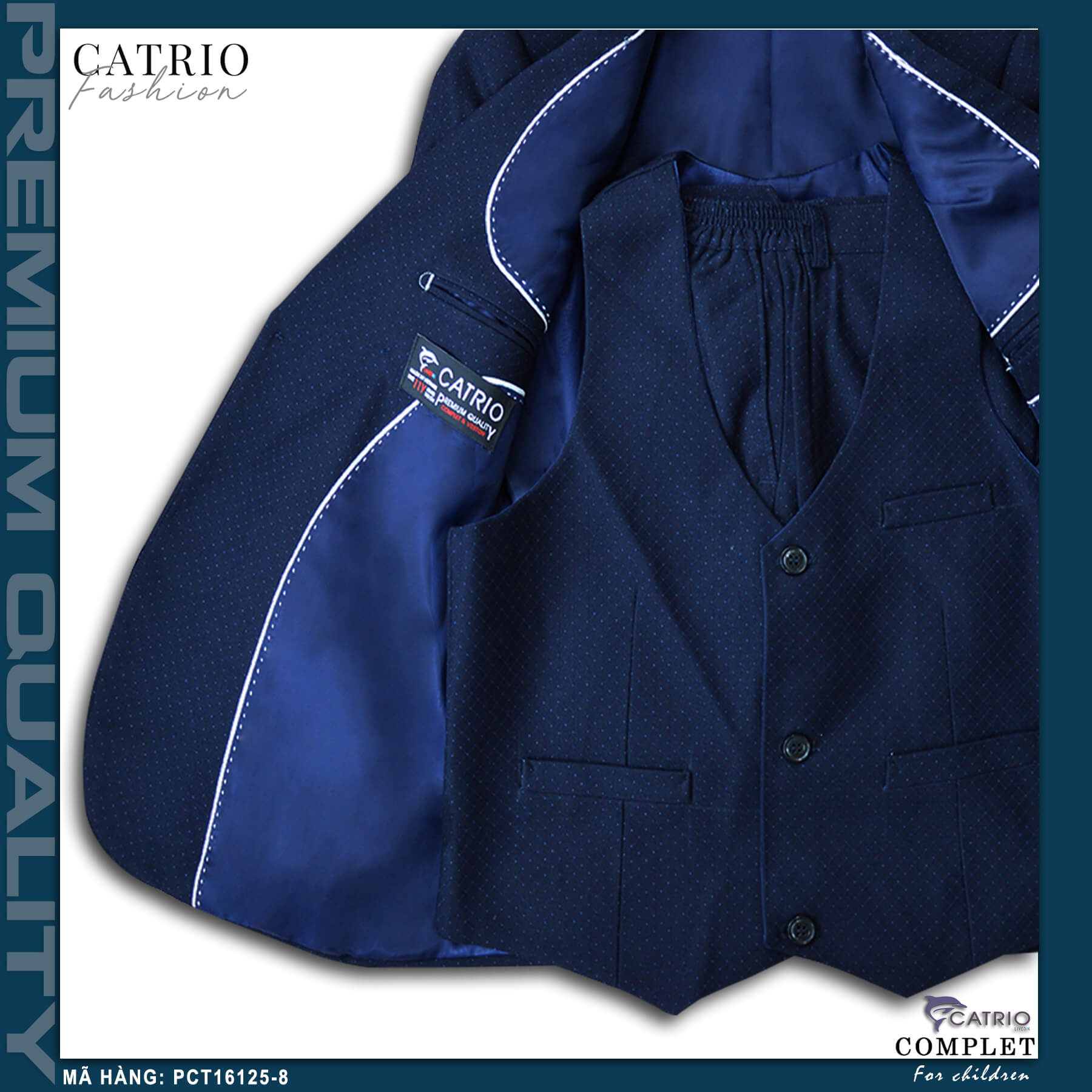 ✨BỘ VEST BÉ TRAI CATRIO PCT16125/8 LÀ BỘ COMPLET TRẺ EM từ 6 tuổi đến 10 tuổi (25kg đến 35kg) thuộc bộ sưu tập quần áo trẻ em trang trọng cho mùa lễ hội, tết, tiệc cưới, sự kiện sinh nhật, được làm bằng vải dạ cao cấp nhất, đẹp đến từng chi tiết