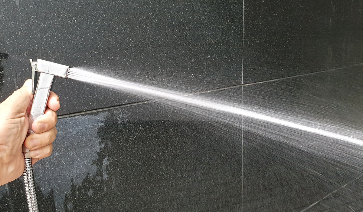Tay xịt được sản xuất với chất liệu Đồng H61, mạ Crome 3 lớp sáng bóng. Vật liệu đạt tiêu chuẩn chất lượng Châu Âu, không bong tróc lớp xi mạ theo thời gian.