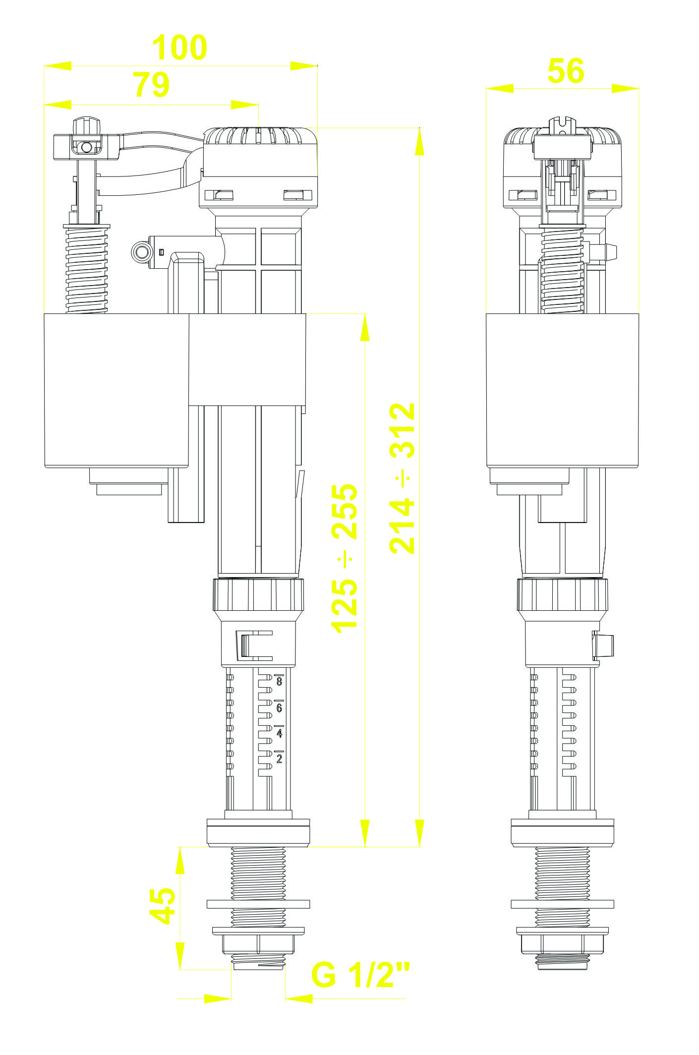 - Đặc biệt chiều cao ống cấp nước có thể điều chỉnh cao tối đa 314mm hoặc thấp được tối thiểu 214mm.