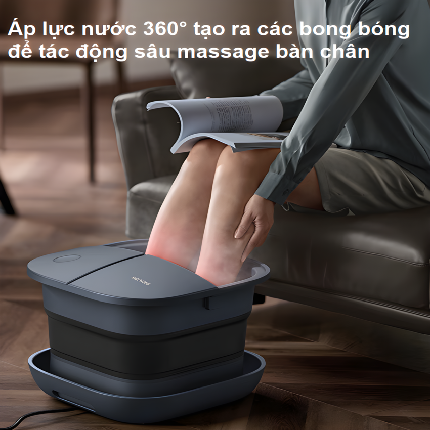 Bồn gấp gọn mát xa tự động Philips giữ nhiệt 3 mức, Chậu ngâm chân 220V chống giật an toàn cao