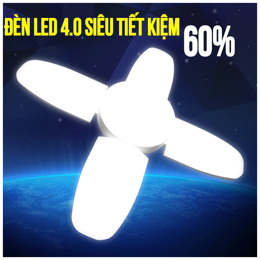 • Bóng đèn led 60w hình quạt siêu sáng thiết kế hiện đại thông minh có thể mở gắp điều chỉnh các cánh đèn, hoặc chiếu xuống như loại đèn xưởng