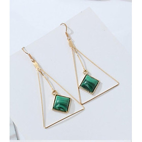 ✨Bông tai tam giác dáng dài đính đá xanh BT104