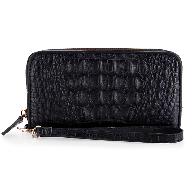 Ví/Bóp nữ da bò Huy Hoàng vân cá sấu nhỏ 1 khóa màu đen 3170