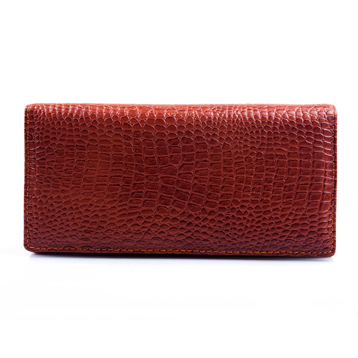 Ví/Bóp nữ Huy Hoàng da bò vân cá sấu 3 gấp màu nâu 3107
