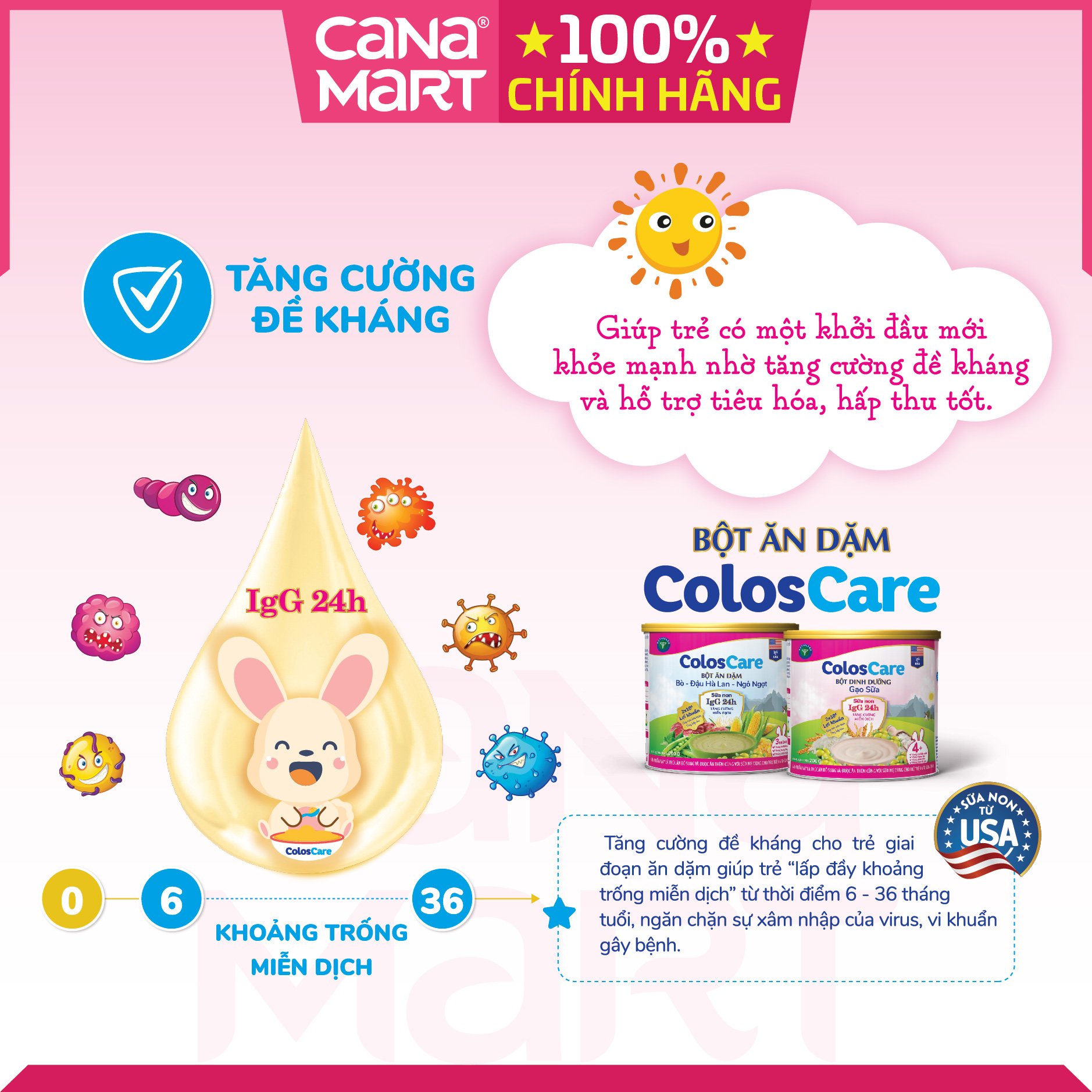 Bọt ăn dặm ColosCare vị Gạo sữa là sản phẩm đầu tiên có bổ sung sữa non 24h giúp tăng cường hệ miễn dịch cho bé. ĐỐI TƯỢNG SỬ DỤNG: cho trẻ từ 6
