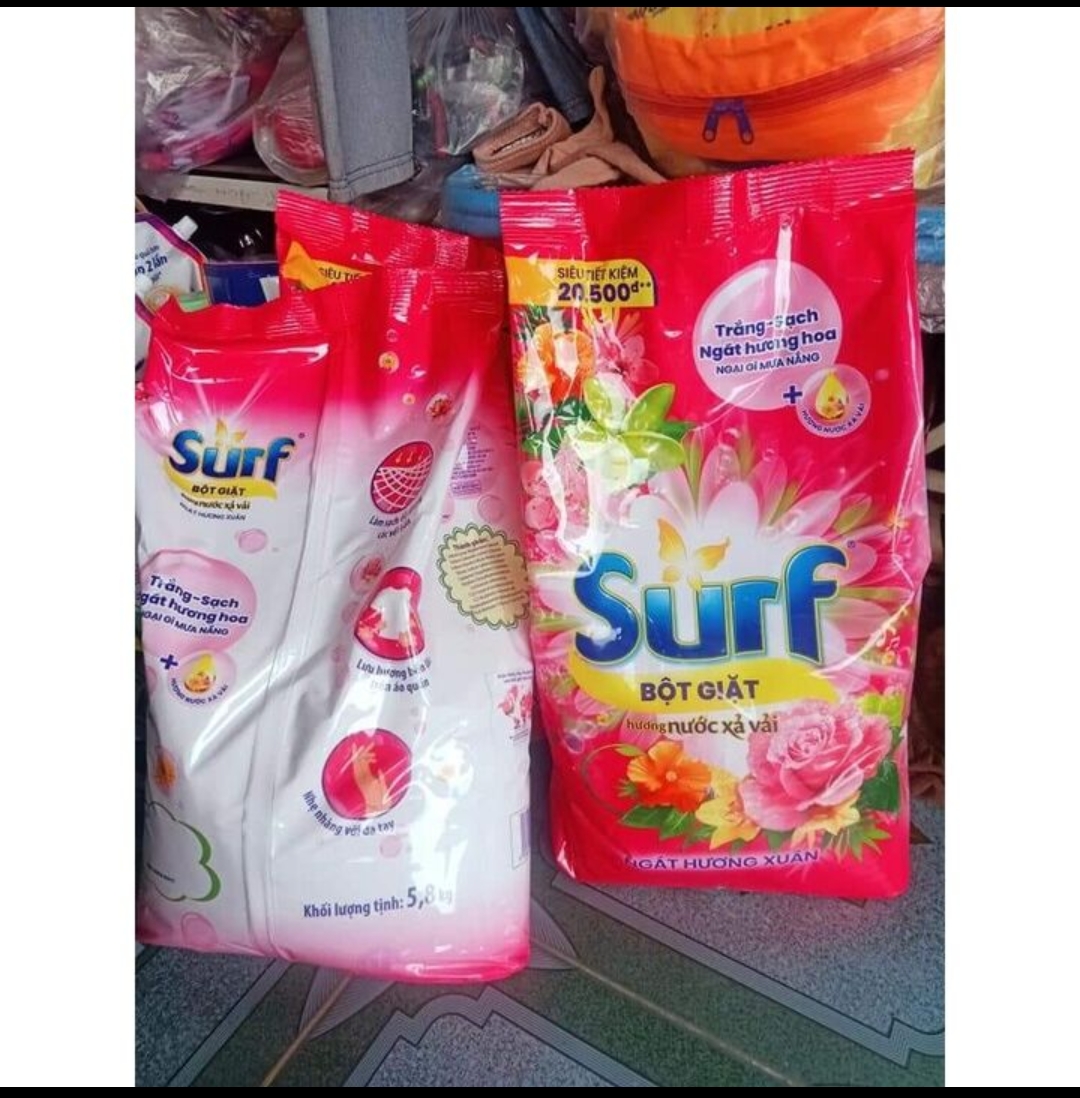 Mua tại Tiktok- Thông tin sản phẩm với công nghệ tinh chế từ Pháp, hương xuân từ nước xả vải thấm sâu vào từng sợi vải, ngát hương từ khi giặt đến khi mặc. Bột giặt Surf là thương hiệu bột giặt rất được ưa chuộng vì an toàn cho làn da khi sử dụng. Bột giặt Surf ngát hương xuân 5.8kg túi lớn, tiết kiệm, dùng được lâu dài Thương hiệu Surf (Anh và Hà Lan) Công dụng Hương nước xả vải thấm sâu vào từng sợi vải, ngát hương từ khi giặt đến khi mặc, giúp giặt sạch nhanh hiệu quả, nhẹ nhàng với da tay. Mùi hương Ngát hương xuân Sử dụng cho Giặt tay, giặt máy cửa trước, giặt máy cửa trên Khối lượng 5.8kg Hướng dẫn sử dụng Đối với giặt tay. Phân loại quần áp trắng và quần áo màu. Hòa tan 1 muỗng bột giặt Surf vào 4 - 5 lít nước cho đến khi tan hẳn. Ngâm quần áo khoảng 30 phút. Vò nhẹ và xả lại bằng nước sạch. Vắt và phơi nơi khô thoáng. Đối với giặt máy. Phân loại quần áp trắng và quần áo màu. Dùng 2 muỗng bột giặt Surf cho 1 lần giặt thường. Lượng sử dụng có thể thay đổi tùy theo độ bẩn và lượng quần áo. Chọn chế độ giặt phù hợp Sản phẩm này là tài sản cá nhân được bán bởi Nhà Bán Hàng Cá Nhân và không thuộc đối tượng phải chịu thuế GTGT. Do đó hoá đơn VAT không được cung cấp trong trường hợp này.