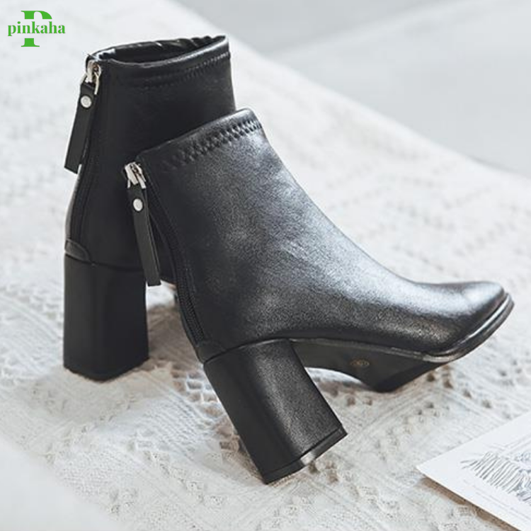 Bốt cao gót da mềm đế vuông khoá kéo sau thời trang mới chuẩn phom xinh xắn #bốt #bốt_nữ #pinkaha