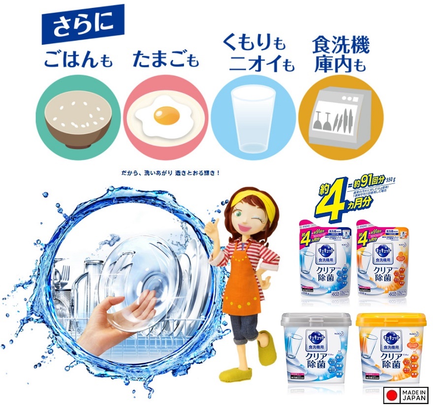 - KAO Kyukyuto là sản phẩm chuyên dụng dành cho máy rửa chén bát, giúp máy hoạt động hiệu quả hơn, êm hơn và gia tăng tuổi thọ của máy! Tính năng diệt khuẩn nhanh, khử mùi hiệu quả trả lại bề mặt sáng bóng cho các vật dụng trong gia đình