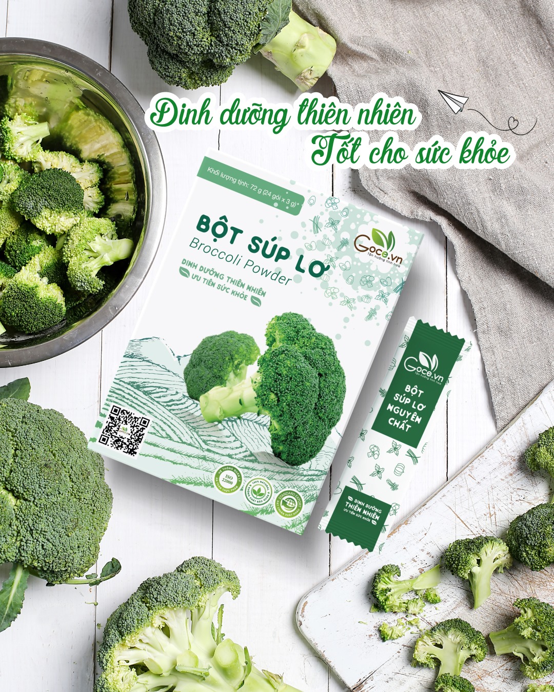 ✨Bột súp lơ nguyên chất Goce (Bông cải xanh) - 72g (24 gói x 3g)