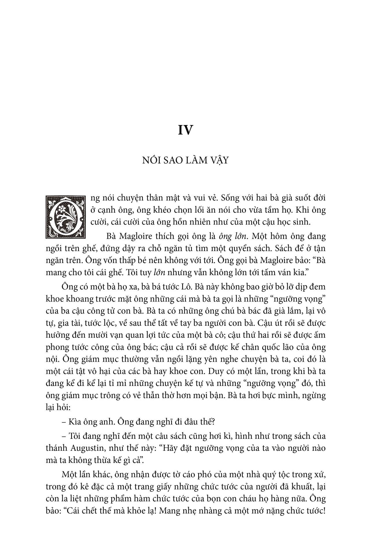 “Tất nhiên, bao giờ lão ta chả có lý, lão ta là người ngoan đạo, cao thượng mà! Thật là một con người đê tiện và bỉ ổi! Và điều đó, ngoài mình ra, không