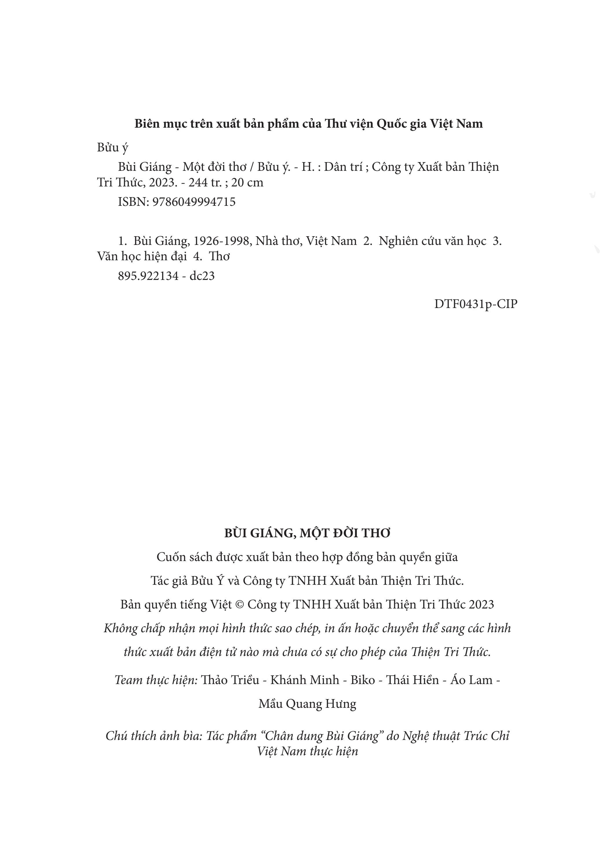 Đây là cuốn sách của nhà văn, dịch giả Bửu Ý, viết về Bùi Giáng, một giọng thơ vô tiền khoáng hậu của văn học Việt Nam thế kỷ XX. Dù viết bao nhiêu về Bùi Giáng, có lẽ cũng là không chính xác hoàn toàn vì ông đã trở thành một hiện tượng, một tượng đài ngôn ngữ, vậy mà qua ngòi bút của Bửu Ý, chúng ta không chỉ thấy Bùi Giáng mà còn thấy cả hơi thở, không khí thời đại mà hai người đã dự phần vào…