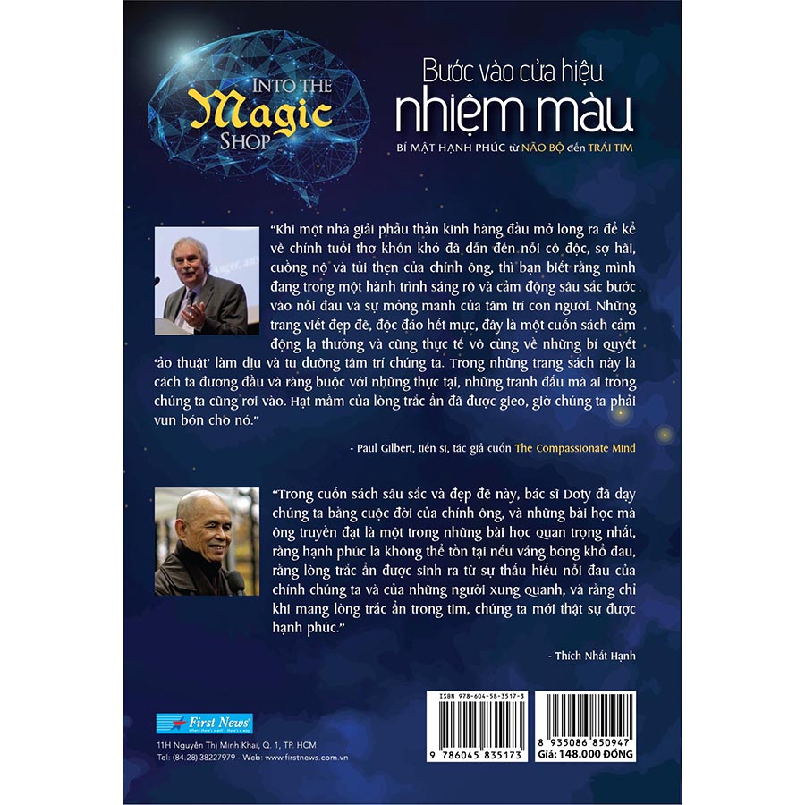 BƯỚC VÀO CỬA HIỆU NHIỆM MÀU - CÂU CHUYỆN KỲ DIỆU VỀ CUỘC ĐỜI CỦA MỘT BÁC SĨ PHẪU THUẬT THẦN KINH Có gì trong “Bước vào cửa hiệu nhiệm màu” – Cuốn sách truyền cảm hứng cho nhóm nhạc hàng đầu Hàn Quốc BTS? Cuốn sách thay đổi cuộc đời của một bác sĩ phẫu thuật thần kinh. Một cuốn sách khám phá bí mật hạnh phúc từ não bộ đến trái tim. Sách được Goodreads Choice Awards đề cử hạng mục Best Science & Technology (cuốn sách hay nhất thuộc lĩnh vực khoa học và công nghệ). “Bước vào cửa hiệu nhiệm màu” là lời giải đáp khoa học về những bí ẩn của não bộ trong sự liên kết chặt chẽ với trái tim, tìm đến cội nguồn của hạnh phúc với ý nghĩa bản chất nhất của từ này. Sách cũng là câu chuyện chân thật, đầy cảm động về hành trình vươn lên trong cuộc sống của chính tác giả. “Bước vào cửa hiệu nhiệm màu” (Into the magic shop) là câu chuyện về hành trình lớn lên, trưởng thành và tìm kiếm ý nghĩa cuộc sống của tác giả - TS. James Doty. Sách kể lại câu chuyện của chính cuộc đời tác giả, từ khi ông còn là một đứa trẻ đầy thương tổn bởi những hệ lụy của cái nghèo và sự thiếu thốn tình thương, đến dần bước ra khỏi bóng tối, tự xây dựng con đường và con người mình muốn trở thành. Trên hành trình đó TS. James Doty đã trải không ít khó khăn, thách thức, song ông cũng may mắn gặp được bà Ruth - “người bạn lớn” và cũng là chủ tiệm tạp hóa “nhiệm màu”. Giống như đứa trẻ Jim Doty nghèo khó ở vùng hoang mạc Lancaster trong cuốn sách, tất cả chúng ta rồi sẽ tổn thương theo cách này hay cách khác và để vượt qua nỗi đau, chúng ta không có cách nào khác là đối diện với chúng. “Cửa hiệu nhiệm màu” vừa là bối cảnh trong câu chuyện, cũng vừa là ẩn dụ về lựa chọn của chúng ta trước những nỗi đau trong đời. Chủ động bước qua cánh cửa của sự thương tổn, để mở rộng trái tim và tự chữa lành cho mình, là cách để chúng ta bước ra khỏi vùng tối của đớn đau và tuyệt vọng. Tác giả chia sẻ những trải nghiệm và bài học sâu sắc trong cuộc đời của mình. Những trải nghiệm đó bao gồm việc ông mất đi người thân, cận kề cái chết, trở thành một nhà giải phẫu thần kinh lẫy lừng danh tiếng, rồi gần như đánh mất mọi thứ mà ông từng nghĩ là mục tiêu cả đời. Để rồi James nhận ra giá trị chân chính của một cuộc đời hạnh phúc cũng như tất cả những điều lớn lao mà con người có thể làm bằng tình yêu thương. Đó cũng chính là những bài học sâu sắc và thông điệp của “Bước vào cửa hiệu nhiệm màu”. Đặc biệt, tác giả cuốn sách còn là một nhà khoa học hàng đầu trong ngành Y - một bác sĩ giải phẫu thần kinh, nên ông có những hiểu biết sâu sắc về cấu trúc tinh vi và phức tạp của bộ não. Ông cũng cho thấy, khi khai thác được tối đa sức mạnh của bộ não và trái tim trong sự cân bằng, kết hợp của chúng, chúng ta có thể làm nên những điều phi thường. Ngoài ra, những câu chuyện về việc học tập, theo đuổi ngành Y và làm việc với các bệnh nhân, cũng được ông kể lại rất chân thật và cảm động. Qua lời kể ở ngôi thứ nhất, người đọc như một người đồng hành được quan sát, chứng kiến bao thăng trầm trong cuộc đời tác giả. Cuốn sách là sự kết hợp hoàn hảo giữa một cuốn hồi ký cảm động, những thông tin khoa học cực kỳ bổ ích và sức mạnh truyền cảm hứng to lớn. Chúng ta cảm động bởi chứng kiến hành trình cuộc đời được mất nhiều thăng trầm của người kể chuyện, đồng thời được đồng hành trên một hành trình tìm về bản chất. Bản chất của nỗi đau. Bản chất của hạnh phúc. Bản chất của yêu thương. Và trên hết, bản chất của chúng ta với tư cách một con người. Đó là hành trình chiêm nghiệm ra rằng hạnh phúc và yêu thương là 2 “bộ môn khoa học” mà tất cả chúng ta đều có thể học và thực hành, bằng cách bắt đầu thay đổi cách chúng ta suy nghĩ và cảm xúc. Bởi vì, “Hạnh phúc riêng lẻ và phúc lợi cộng đồng của chúng ta phụ thuộc vào sự tích hợp, cộng tác của cả tâm trí và trái tim ta.” “Bước vào cửa hiệu nhiệm màu” ẩn chứa rất nhiều bài học ý nghĩa cuộc đời. Những thông điệp chính mà cuốn sách muốn truyền tải bao gồm: Trước hết, tiền bạc và danh vọng không phải là mục tiêu cuối cùng của mỗi con người. Trên tất cả mọi thứ, chính yêu thương và sự kết nối mới làm nền tảng cho hạnh phúc và sự mãn nguyện của cuộc đời. Thứ hai, bộ não và trái tim là hai bộ phận chịu trách nhiệm và không thể nào tách rời trong hạnh phúc của mỗi người; và yêu thương, lòng trắc ẩn chính là bộ môn khoa học dựa trên nền tảng hoạt động của sự kết hợp ấy. “Bước vào cửa hiệu nhiệm màu” được xuất bản lần đầu tiên vào năm 2016, ngay lập tức cuốn sách đã để lại ấn tượng trong lòng độc giả và giới chuyên môn. Sách đượ