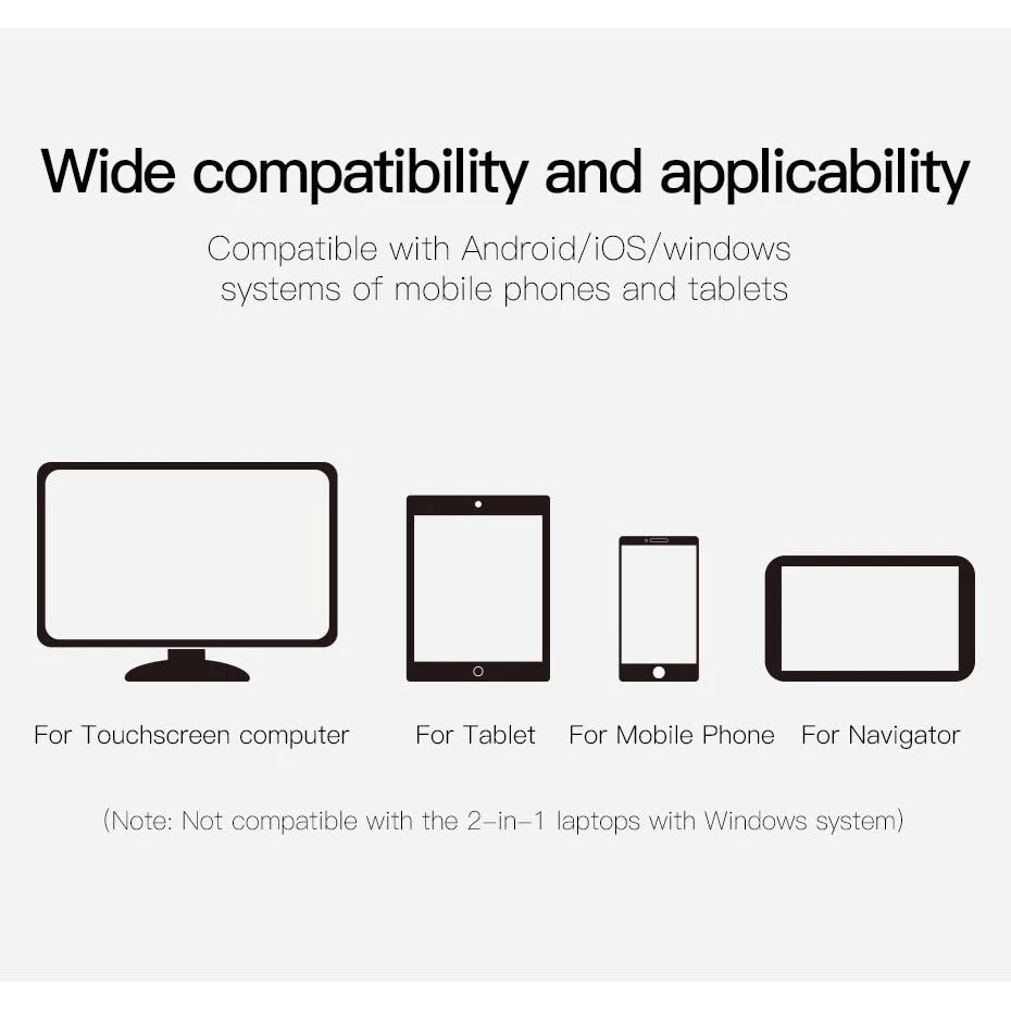 TÍNH NĂNG CƠ BẢN: - Bút cảm ứng dùng cho mọi màn hình cảm ứng điện dung. Tương thích tốt với tất cả các smartphone và tablet hiện này từ Android cho đến iOS .