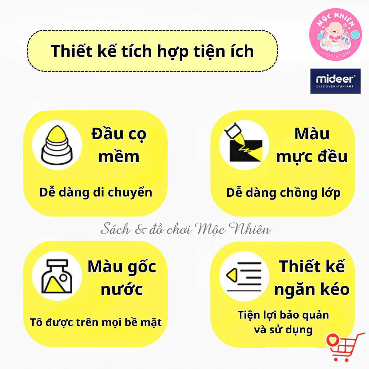 Với Bút đánh dấu Mideer Acrylic Markers các bé thỏa sức sáng tạo những bức tranh tuyệt đẹp màu tươi sáng đều màu trên các loại giấy, kính, gỗ và vải nhờ đó bức tranh của bé sẽ trơ lên sống động và bắt mắt hơn.