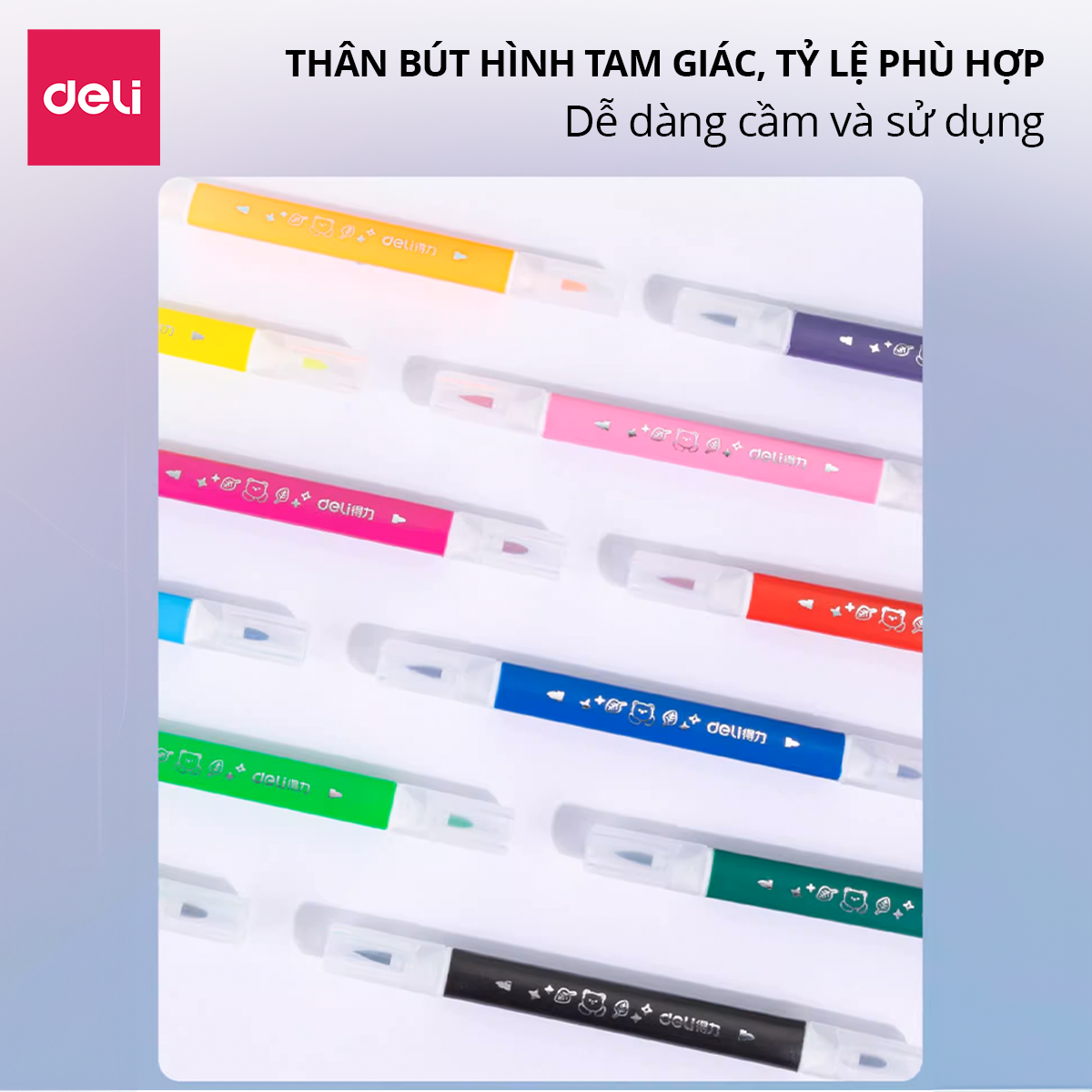 ✨Bút Màu Dạ Marker 2 Đầu Deli - Bút Dạ Nước 12/24/36/48 Màu Vẽ Tranh Viết Calligraphy Chuyên Nghiệp - Kèm Hộp Nhựa