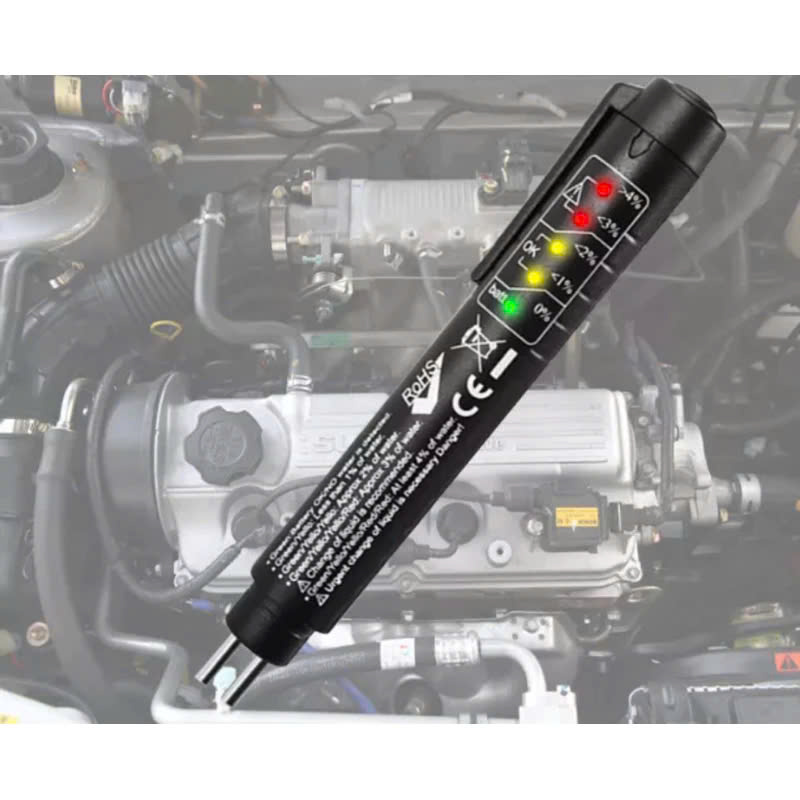 4. Nhúng đầu bút thử vào bình chứa dầu phanh, đợi 10s, sau đó kết quả sẽ được hiển thị trên thân thiết bị bằng Đèn Led.