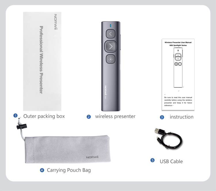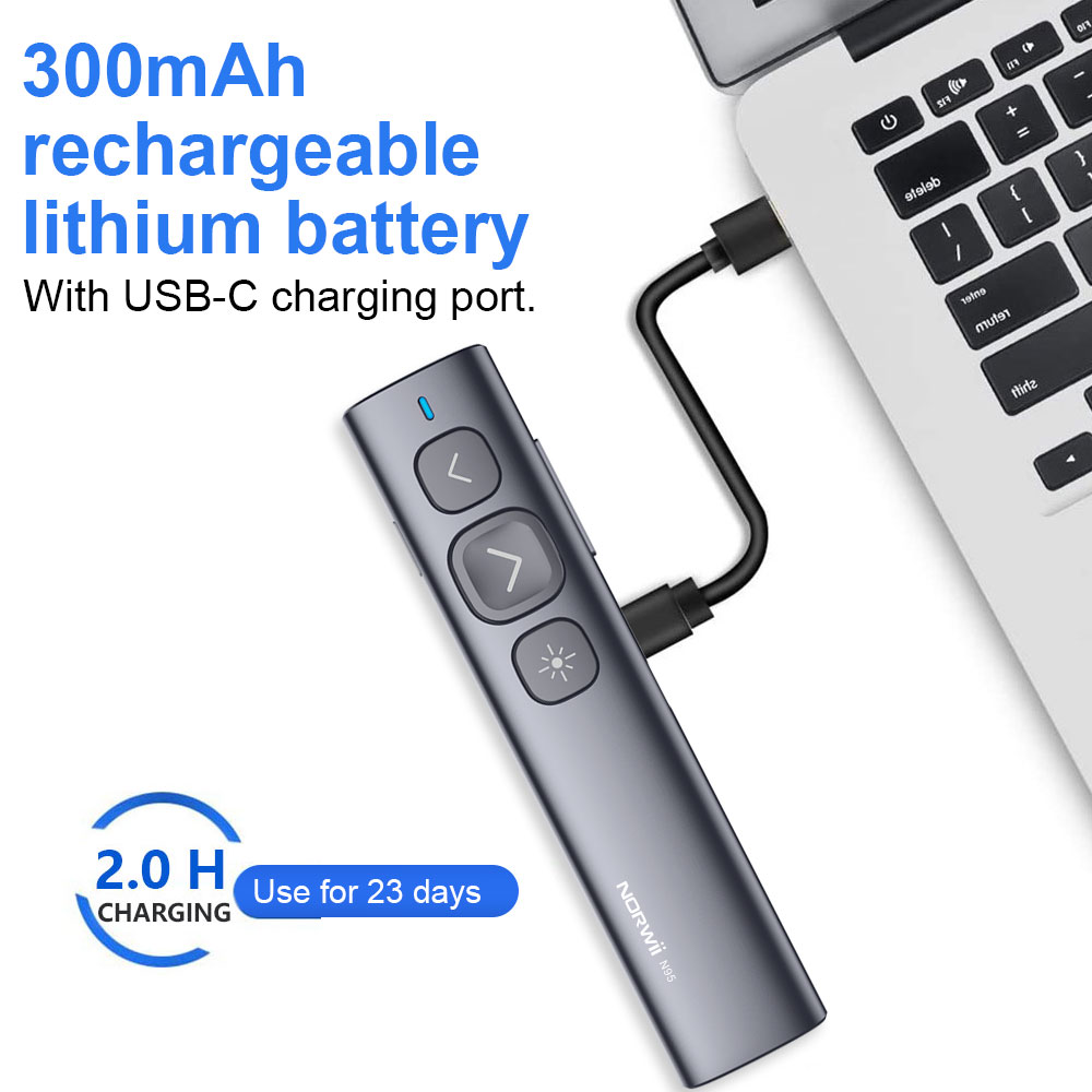 Bút trình chiếu cho màn hình LED Norwii N96S với Laser màu xanh  là lựa chọn hoàn hảo cho các bài thuyết trình, giảng dạy và hội nghị, với thiết kế tinh tế và tính