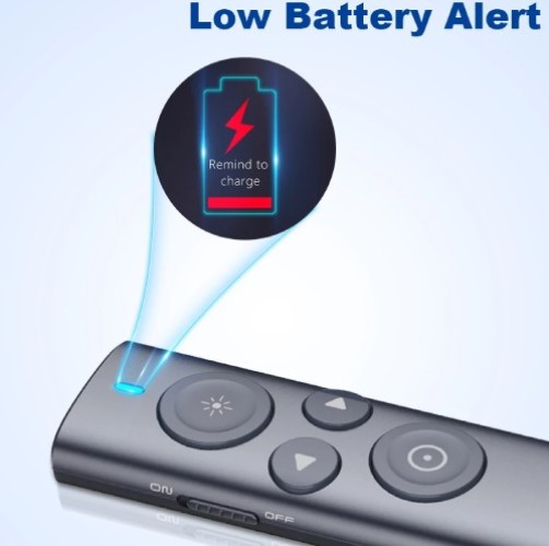 Laser xanh: Người dẫn chương trình không dây với tia laser màu xanh lá cây hiển thị tốt hơn trên nhiều nền khác nhau, ánh sáng xanh lục tươi sáng giúp bạn chỉ rõ mọi thứ