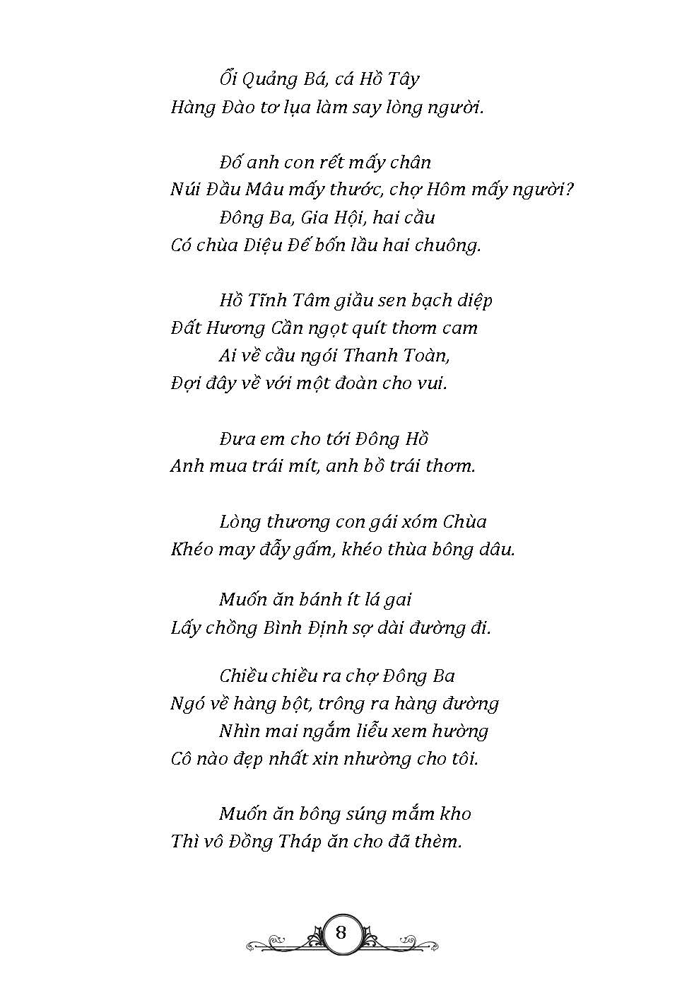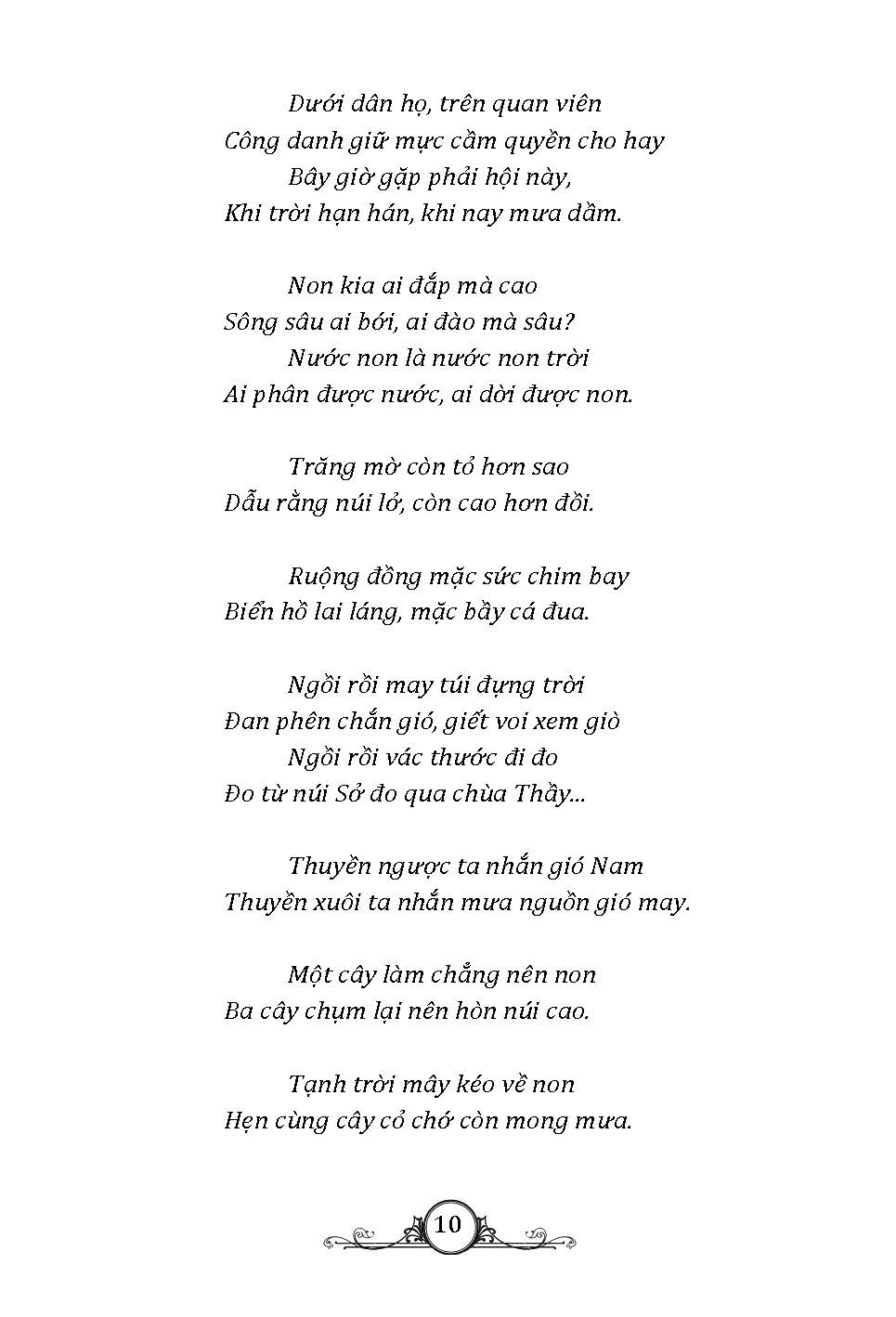 Tuyển tập thơ ca dân gian Việt Nam với những câu hát phổ biến dễ nhớ, dễ thuộc, chứa đựng những giá trị và ý nghĩa sâu sắc về tình yêu quê hương, đất nước,