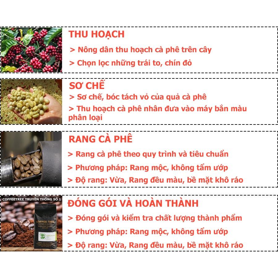 - Quy chuẩn theo quy trình khép kín từ Nông trại - Nhà máy - đến Người tiêu dùng TẠI SAO NÊN CHỌN CÀ PHÊ CoffeeTree CoffeeTree được sinh ra mang sứ mệnh phục vụ cà phê ngon, chất lượng, sạch 100% cho người Việt. Những hạt cà phê CoffeeTree được chăm chút, chọn lọc một cách kỹ lưỡng. Dịch vụ tận tâm: Sản phẩm luôn được đóng gói kỹ, đẹp mắt trước khi giao đến tay bạn. Đơn hàng được xử lý ngay sau khi đặt hàng, chậm nhất là 2 tiếng. Cam kết hoàn lại tiền nếu cà phê không chất lượng, cà phê có pha trộn, không nguyên chất. Chính sách giá tốt và luôn là giá tốt nhất.