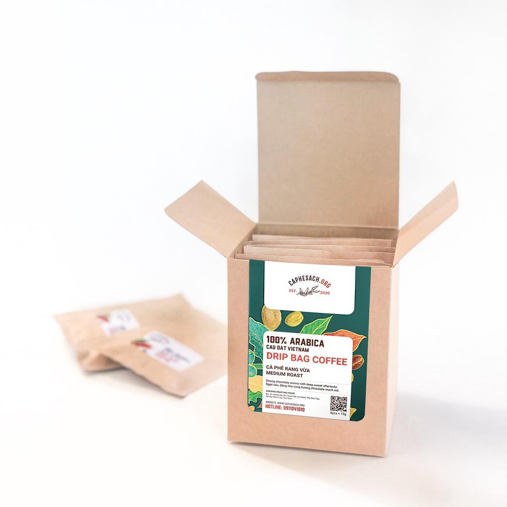 HỘP CÀ PHÊ TÚI GIẤY LỌC CAO CẤP, PHIN GIẤY TIỆN LỢI CAPHESACHORG - ARABICA MEDIUM ROAST Ngọt sâu, đắng nhẹ.