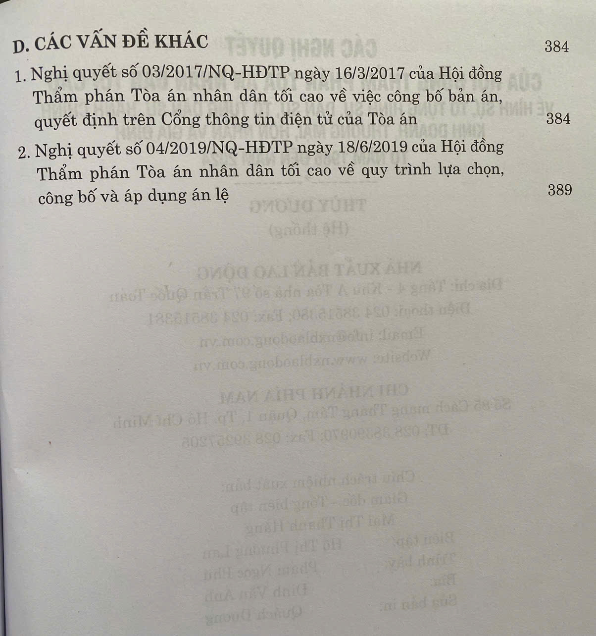 Án Lệ Việt Nam (Sách chuyên khảo, xuất bản lần thứ 2) Tác giả: Tòa Án Nhân Dân Tối Cao - GS.TS. Nguyễn Hòa Bình (Chủ biên) Nhà xuất bản: Chính trị quốc gia Sự