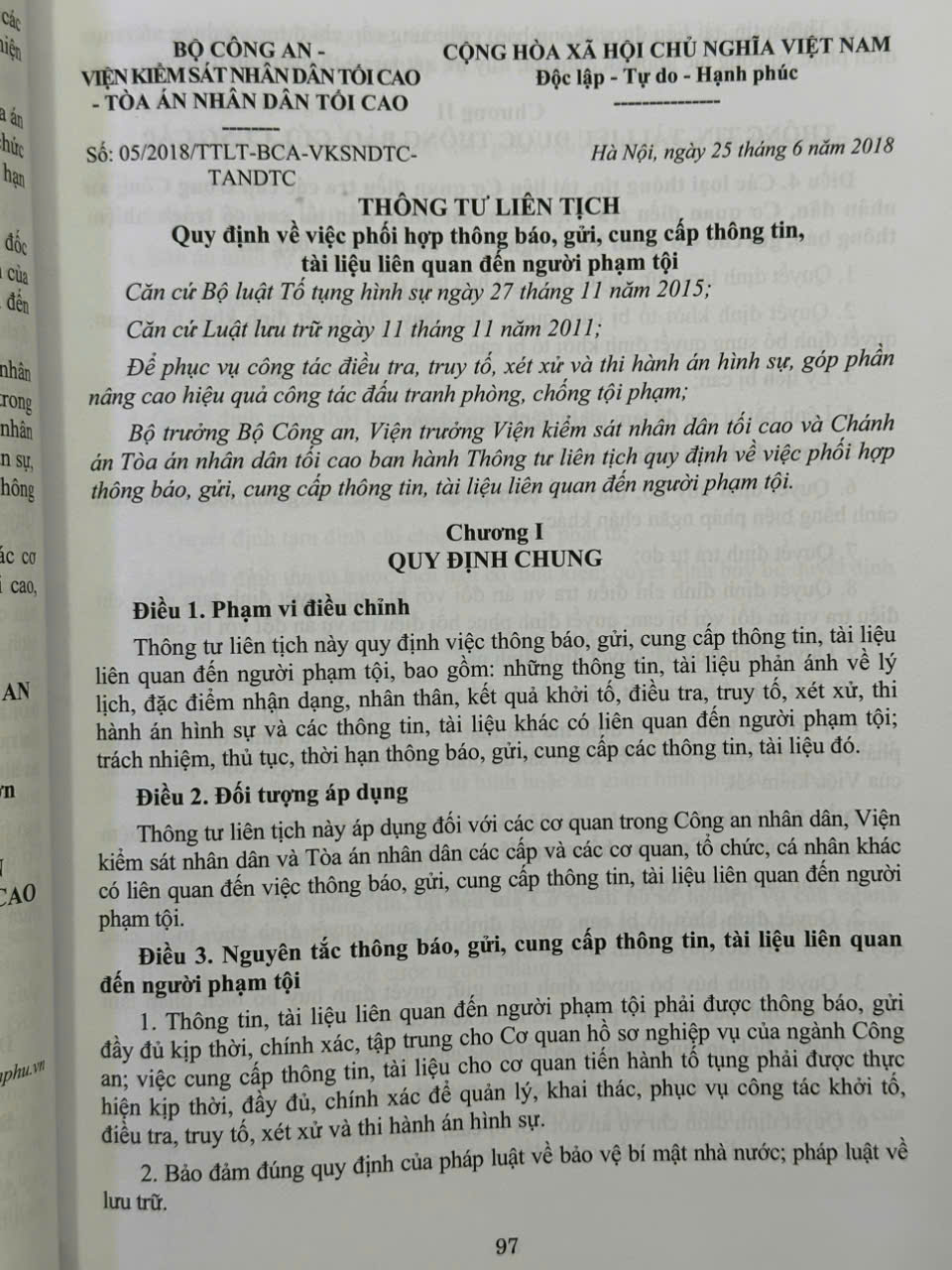 Phần thứ hai: Các Thông tư liên tịch của Tòa án nhân dân tối cao – Viện Kiểm sát nhân dân tối cao – Bộ Tư pháp – Bộ Công an – Bộ Quốc phòng về tố tụng hình sự