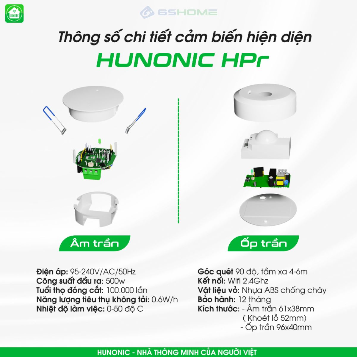 Cảm Biến Hiện Diện Ốp Trần, Âm Trần Hunonic HPR - Phát Hiện Chính Xác Người, Đèn Bật Tắt Tự Động, BH 1 Năm