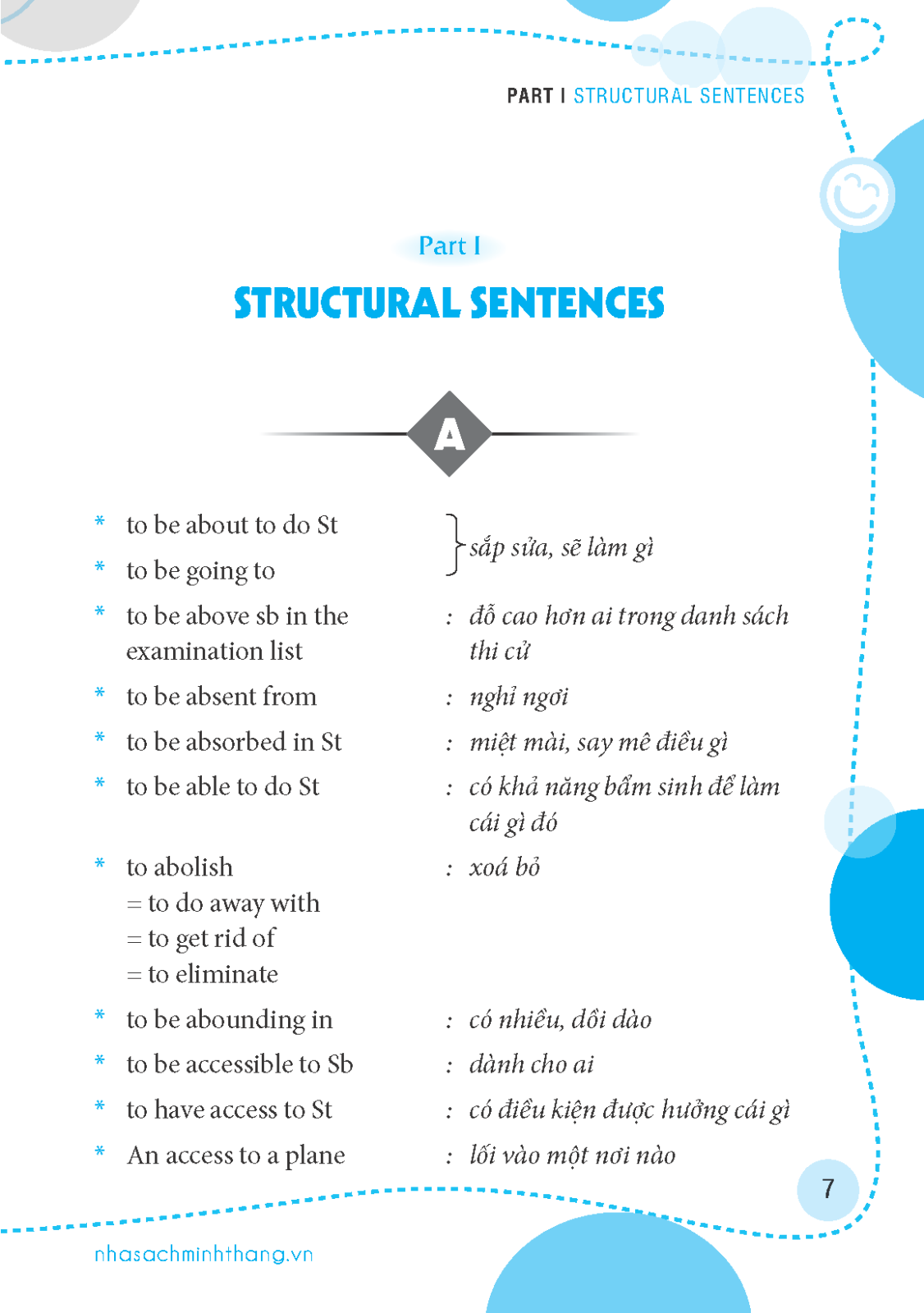 Nếu các nói m.ình đã nắm vững các thời, thì cách phát âm đúng từ của tiếng Anh thôi thì có lẽ là chưa đầy đủ. Các bạn bối rối phần nhiều là do bạn không có vốn cấu trúc câu phong phú, bạn sẽ tự tin hon khi đàm thoại với người nước ngoài, bài luận của các bạn sẽ hay hơn khi vốn cấu trúc câu dùng trong bài không bị nhàm chán.