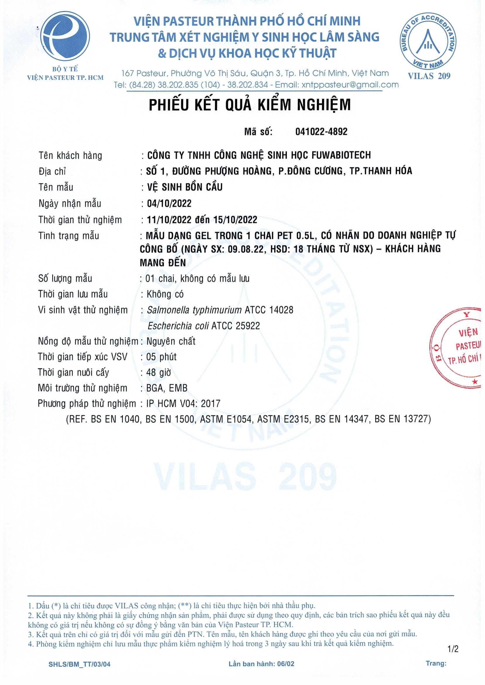 - Diệt 99% vi khuẩn đã được Viện Pasteur chứng nhận.