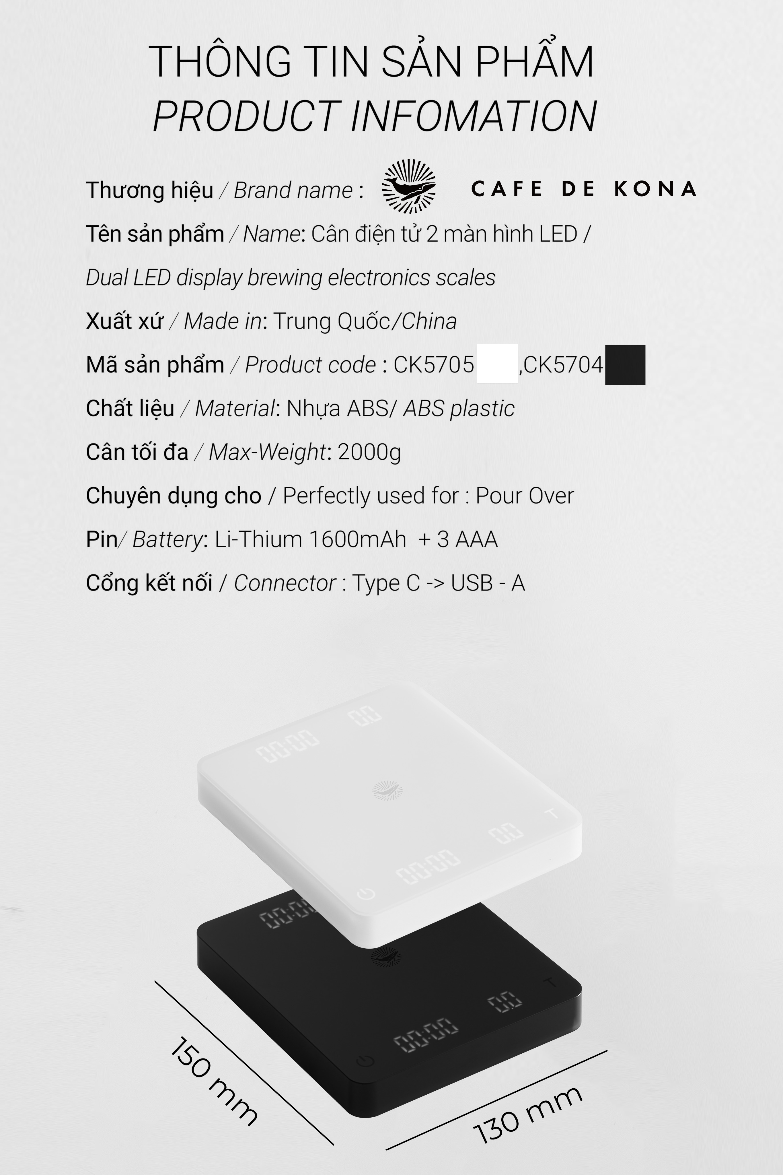 Màn hình LED siêu sáng: Sử dụng trong mọi điều kiện ánh sáng kể cả tắt đèn thường chỉ xuất hiện trên những dòng cân cao cấp hơn như Acaia hoặc Brewista.