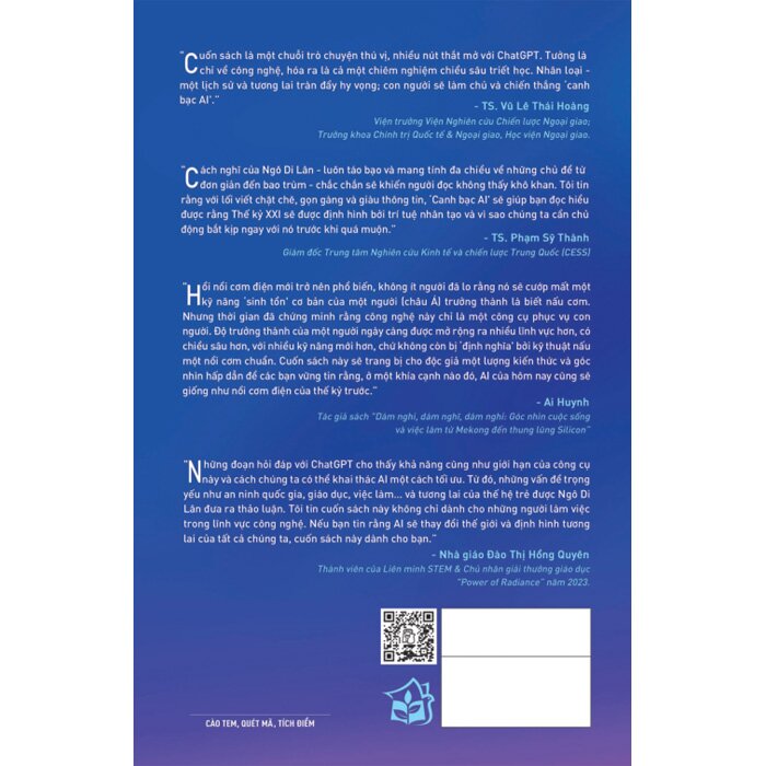 Qua đó, anh chỉ ra những ưu và nhược điểm của công cụ này. Bên cạnh đó, anh cũng cung cấp cho độc giả một số điều cần lưu ý để tối ưu hiệu quả mà ChatGPT mang lại. Ở phần thứ II của cuốn sách, Ngô Di Lân đi sâu phân tích và dự báo về tương lai của giáo dục, việc làm, sáng tạo, an ninh quốc gia và loài người khi chịu sự can thiệp của AI.